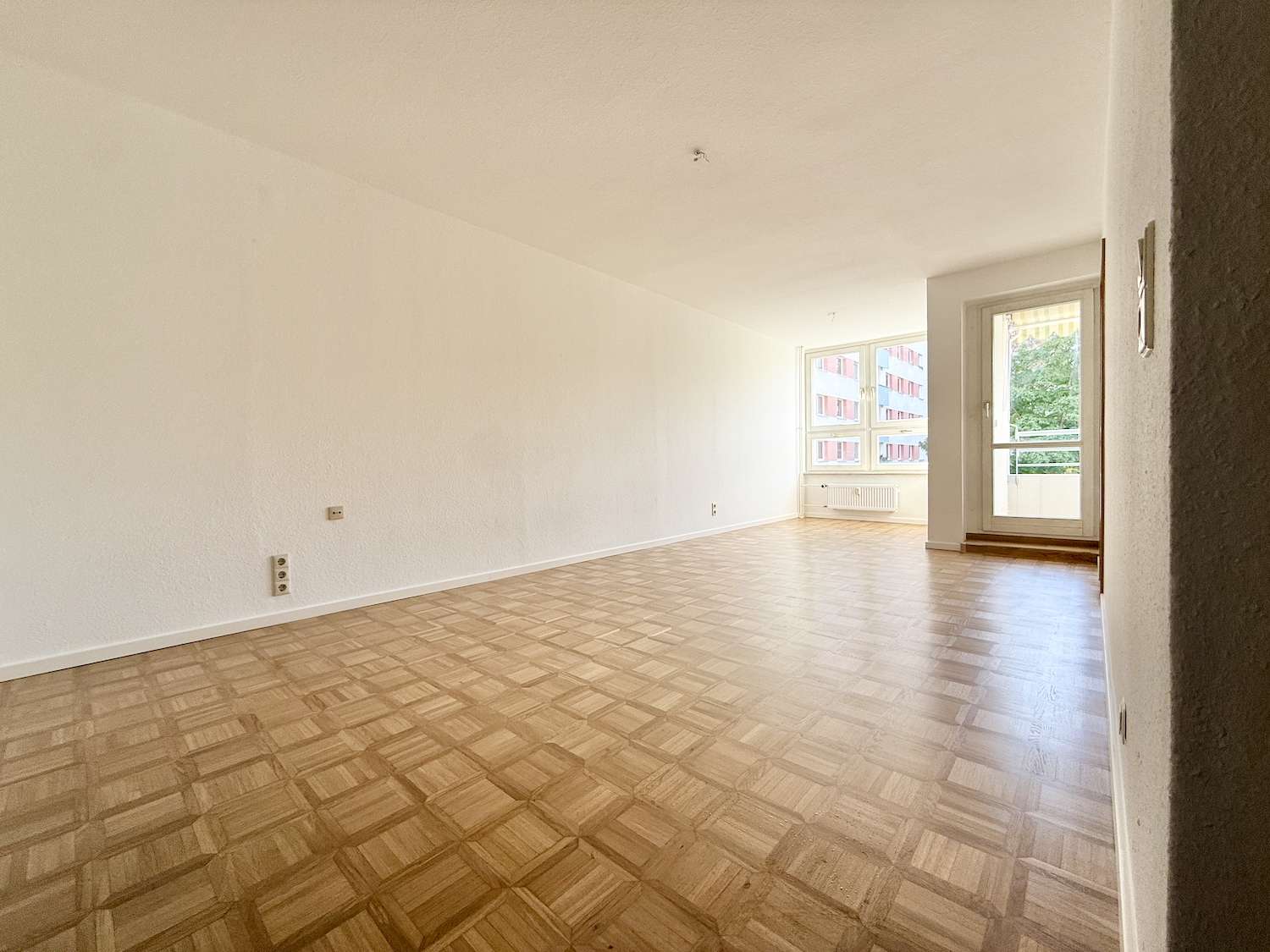 Das große Wohn-/Esszimmer bietet ausreichend Platz für gemütliche Abende, gesellige Stunden mit Freunden und flexible Einrichtungsmöglichkeiten. Vom Wohnzimmer aus gelangt man auf den Balkon, der zum Entspannen einlädt. Der Balkon mit Markise schafft Platz für gemütliche Stunden im Freien. Das Schlafzimmer ist ruhig gelegen und bietet ausreichend Raum für ein Doppelbett sowie Stauraum. Die Küche ist funktional geschnitten und lässt sich individuell gestalten. Außerdem verfügt sie über ein großes Fenster, das sich ideal als Durchreiche zum Balkon nutzen lässt – perfekt, um abends beim Essen die frische Luft zu genießen. Das Badezimmer ist funktional und mit einer Badewanne und einem Waschmaschinenanschluss ausgestattet.
