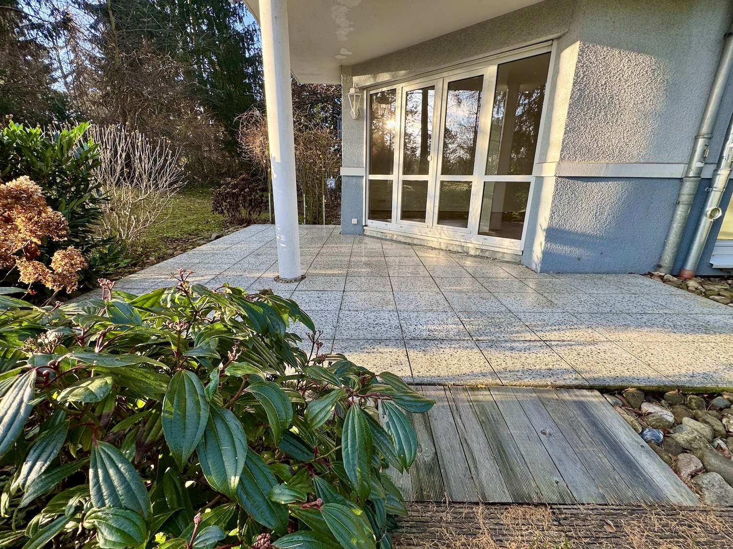 Beim Betreten der Wohnung gelangen Sie in einen geräumigen Flur, der alle Räume harmonisch miteinander verbindet. Rechter Hand öffnet sich das große, helle Wohn- und Esszimmer, das dank der teils bodentiefen Fenster ein besonders einladendes Ambiente schafft. Von hier aus erreichen Sie direkt eine der beiden sonnigen Terrassen mit Zugang zum großzügigen Gartenanteil mit fast 600 m² Fläche (Außenwasserhahn vorhanden). Dieser Platz lädt zu entspannten Stunden im Freien ein, sei es bei einem gemütlichen Grillabend oder als liebevoll eingerichtete Spielecke für die Kinder. Vom Wohn- und Esszimmer aus gelangen Sie zudem direkt in die Küche, was kurze Wege und ein offenes Wohngefühl ermöglicht. In der Küche befindet sich eine moderne Einbauküche aus dem Jahr 2013, die mit allem ausgestattet ist, was man zum Kochen benötigt. Auf der linken Seite des Flurs befinden sich zwei weitere Räume. Das Schlafzimmer überzeugt mit einer hellen, freundlichen Atmosphäre und bietet einen direkten Zugang zur zweiten Terrasse sowie in den Garten. Daneben liegt ein weiteres Zimmer, das sich flexibel als Kinder-, Arbeits- oder Gästezimmer nutzen lässt und viel Raum für individuelle Gestaltung bietet. Das Badezimmer ist mit einer ebenerdigen Dusche, einem Waschtisch und einem WC ausgestattet. Ein separates Gäste-WC sorgt zusätzlich für praktischen Wohnkomfort. Die Waschmaschine können Sie sowohl im Badezimmer als auch im Waschraum im Keller unterbringen.