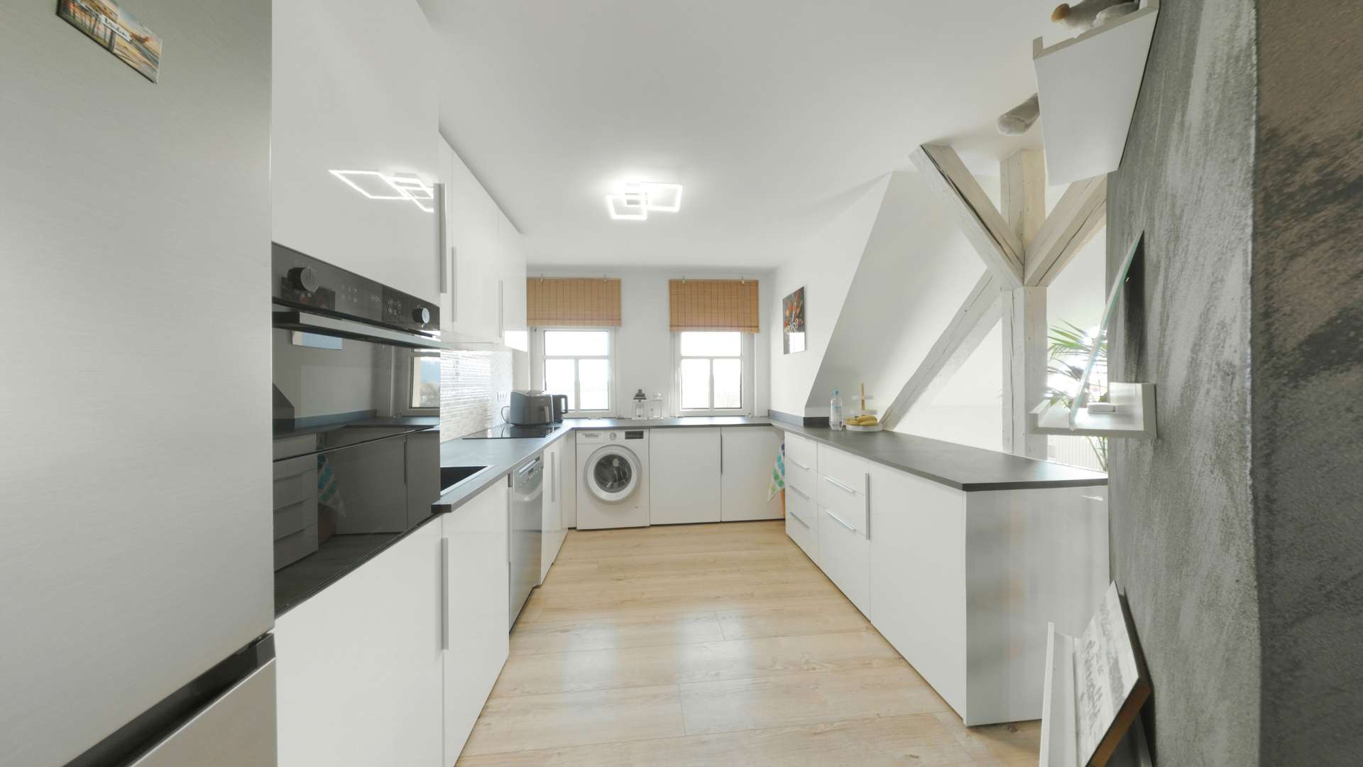 Schon beim Betreten der Wohnung spüren Sie die besondere Atmosphäre. Herzstück ist das weitläufige Wohn- und Esszimmer, das nahtlos in die moderne, offene Küche übergeht. Die Einbauküche aus dem Jahr 2022 ist nicht nur ein optisches Highlight, sondern lädt zu geselligen Kochabenden ein. Sollten Sie eine abgeschlossene Küche bevorzugen, lässt sich dies hier mit wenig Aufwand realisieren.