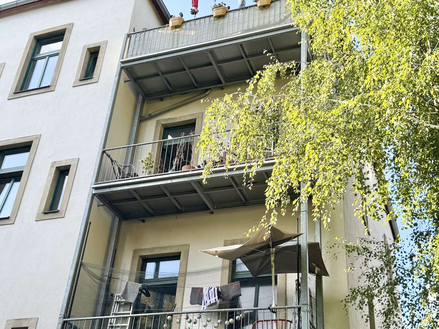 Die Immobilie befindet sich in ruhiger Wohnlage im Dresdner Stadtteil Pieschen, einem beliebten und gewachsenen Wohnquartier nördlich der Elbe. Die Umgebung ist geprägt von sanierten Altbauten, Wohnhäusern sowie einer guten Mischung aus Wohnen, Nahversorgung und Freizeitmöglichkeiten.Einkaufsmöglichkeiten für den täglichen Bedarf, Supermärkte, Bäckereien sowie weitere Geschäfte befinden sich in der näheren Umgebung entlang der Leipziger Straße. Kindertagesstätten, Schulen – darunter das Pestalozzi-Gymnasium Dresden – sowie Ärzte und Apotheken sind ebenfalls gut erreichbar.Eine sehr gute Anbindung an den öffentlichen Nahverkehr ermöglicht eine schnelle Verbindung in die Dresden Altstadt mit Sehenswürdigkeiten wie der Frauenkirche Dresden, dem Zwinger und der Semperoper. Zudem bieten die nahegelegenen Elbwiesen entlang der Elbe vielfältige Möglichkeiten zur