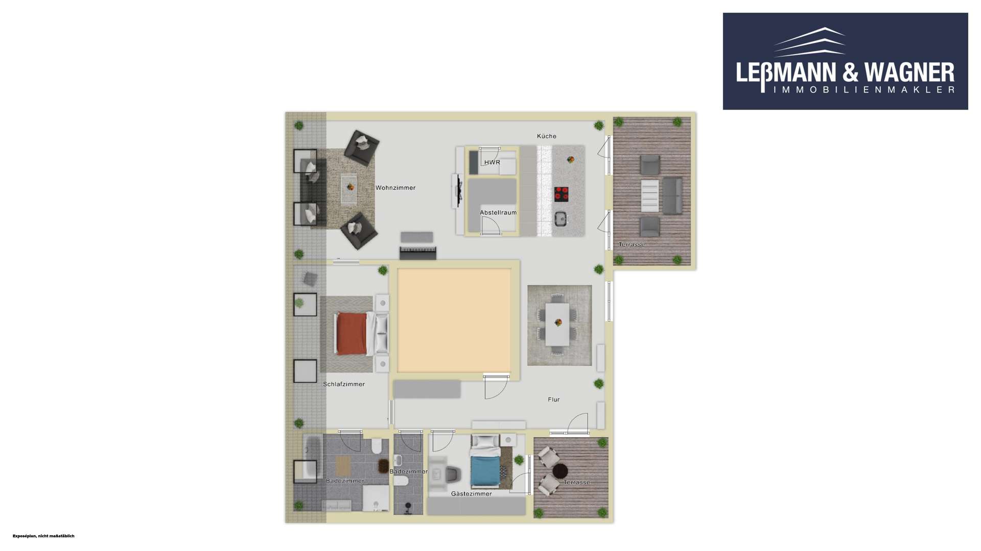 Von diesem zentralen Wohnbereich aus gelangen Sie auf die zwei privaten Dachterrassen, die das Wohnen im Freien auf ein äußerst angenehmes Niveau heben. Durch ihre geschickte Ausrichtung bieten sie zu fast jeder Tageszeit den idealen Sonnenplatz und überzeugen durch Sitzkomfort und absolute Privatsphäre. Ein besonderer Luxus ist die bereits vorhandene, geschmackvolle Bepflanzung, die vor Ort verbleibt. Ein integriertes Bewässerungskonzept übernimmt die Pflege fast wie von selbst und reduziert Ihren Aufwand auf ein Minimum.